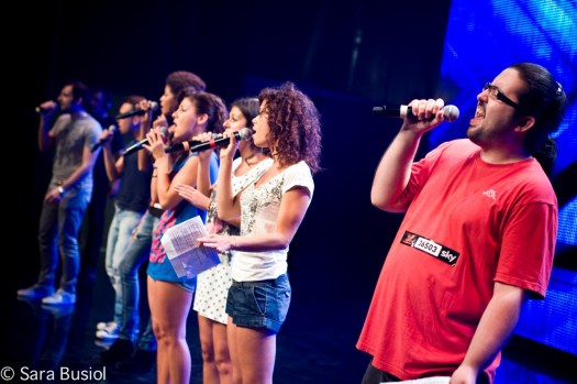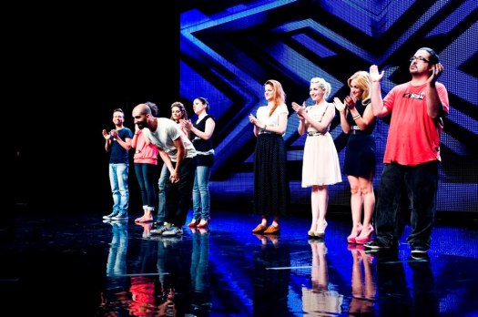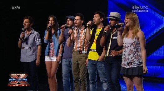 Over: Didier Caria, Mara Sottocornola, Michele Grandinetti, Alessandro Grimaldini, Chiara Galiazzo, Romina Falconi (che oggi non abbiamo MAI sentito cantare). Giudice: un soddisfatto MORGAN.